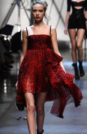 Vaporoso vestido rojo en animal print de Dolce & Gabbana.